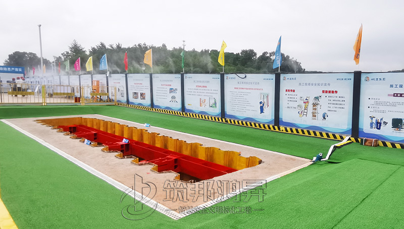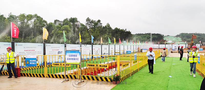 4、工程新技術(shù)新工藝應(yīng)用。GRF裝配式護坡工藝、拉森鋼板樁工藝、安全防護工具化、360度高壓霧樁噴淋系統(tǒng)和微頂管工藝展示。