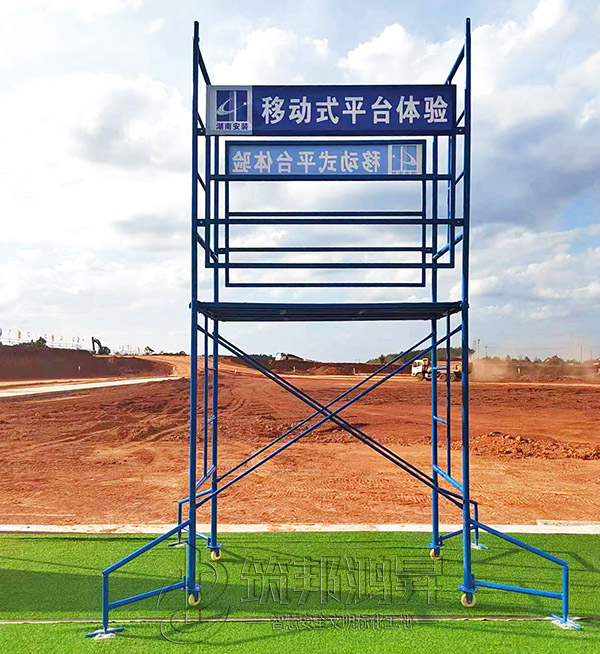 此次合作的安全教育培訓體驗區建設包括了班前講評臺、鋼絲繩使用體驗、安全防護用品展示體驗、綜合用電體驗、安全帶使用體驗、安全急救培訓體驗、移動式平臺體驗、洞口墜落體驗、消防器材柜、安全帽撞擊體驗等。標準款采用鋼結構組裝式設計,高溫烤漆不易褪色,顏色鮮艷更美觀,設計制作安裝全包。筑邦安排專車送貨到衡陽工地,同時安排了專業人手迅速到工地加班加點完成安裝。