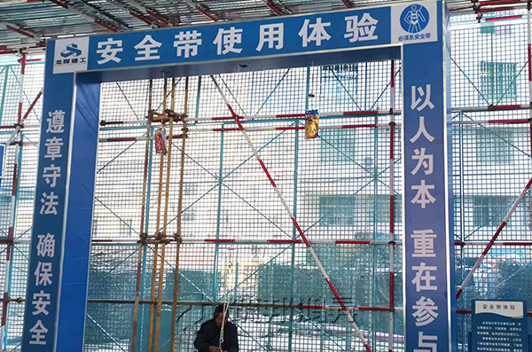 此次合作的工地安全體驗館建設包括了綜合用電體驗、安全帶使用體驗、鋼絲繩使用體驗、班前講評臺、安全急救培訓體驗、洞口墜落體驗、安全帽撞擊體驗、安全防護用品展示體驗、墻體傾倒體驗、滅火器演示體驗等。筑邦安排專車送貨到商洛工地,同時安排了專業人手迅速到工地加班加點完成安裝。