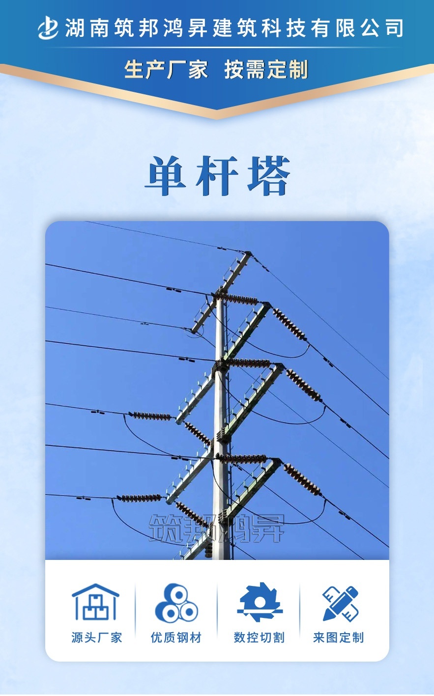 [筑邦鴻昇]單管塔鐵塔采用高壓沖壓、熱鍍鋅工藝,實力大廠供貨準時,服務周到。
