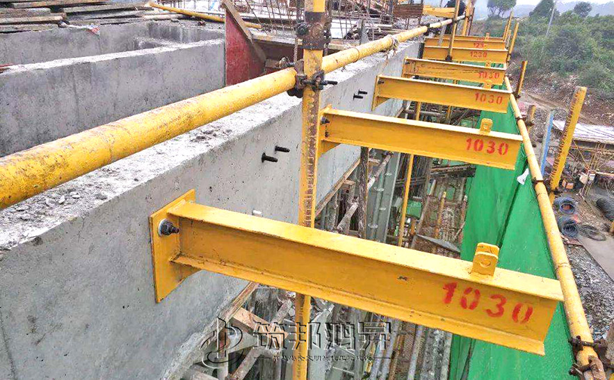 新型花籃懸挑型鋼長度不到傳統懸挑做法的一半長,至少節約55%的型鋼用量;同時新型懸挑的九成配件可以重復使用,大大節約施工成本。