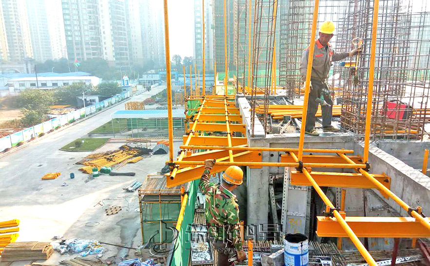 新型花籃懸挑腳手架無需穿墻,無需室內開洞預埋,建筑主體內外更加干凈整齊,美觀大方;配件可以重復利用,不產生建筑垃圾,符合綠色文明施工。