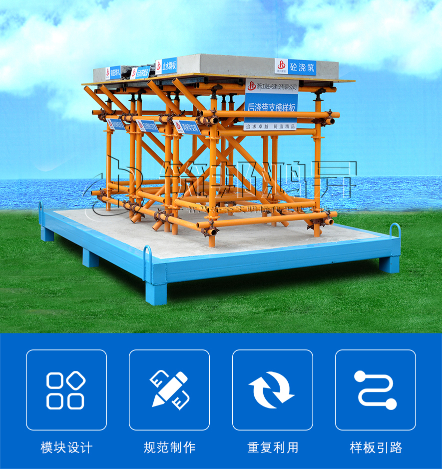 4.頂板后澆帶樣板可按客戶要求定制樣板的工法展示構成,客戶可根據需求來決定項目的差異化工藝展示。